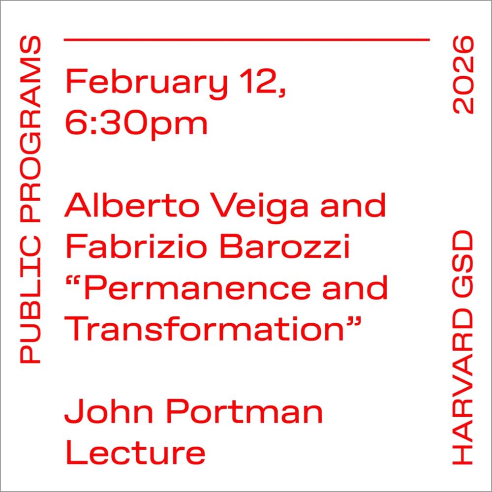 As part of the semester, on February 12, Fabrizio Barozzi and Alberto Veiga will deliver an open lecture at the Harvard GSD, presenting selected works of the office.